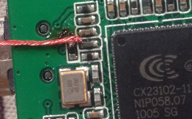 飞线完毕,使用耳机线的漆包线来飞线,这个电视棒是有遥控器的。