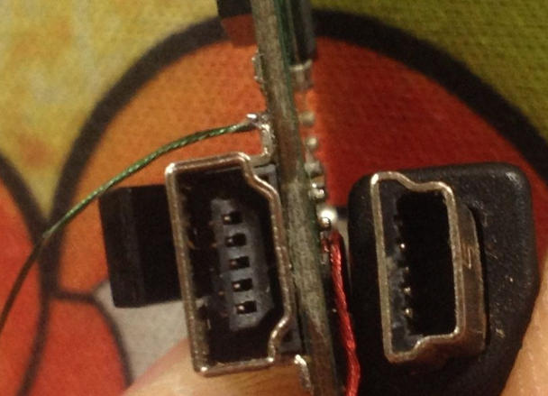 电视棒只有一个射频接口,也就是大多是电视自带用来接天线和模拟闭路电视的接口。射频线传输的是把声音和视频混合并载上高频无线电进行传输。这块电视棒会先把信号中的视频和声音分别提取出来在进行数字化处理传输到电脑。这是改AV电视棒的基础。根据资料找到了找到了线路,接下来就是飞线大法好了。非常常见的mini usb接口