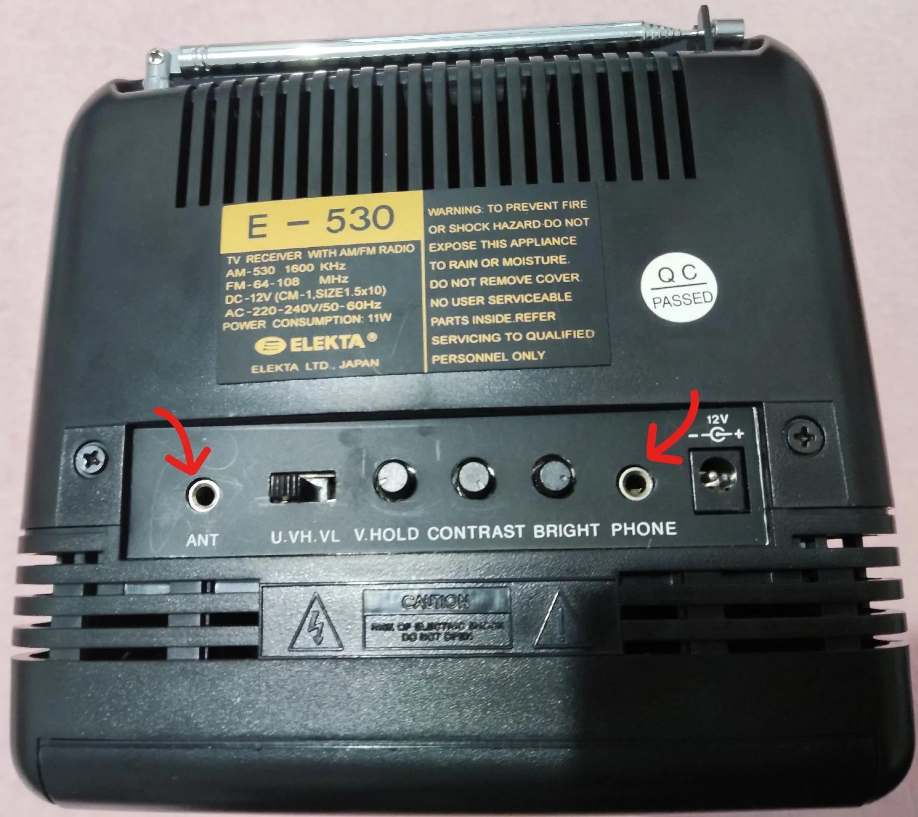 看到电视背面有两个接口,一个是天线接口,一个是耳机接口
