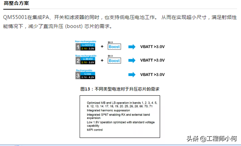 c) 高效率:具备不同的功率模式,从而优化不同功率和电压下面的效率,同时在headroom设计方面,考虑到Cat-M/NB的最高输出功率需求;