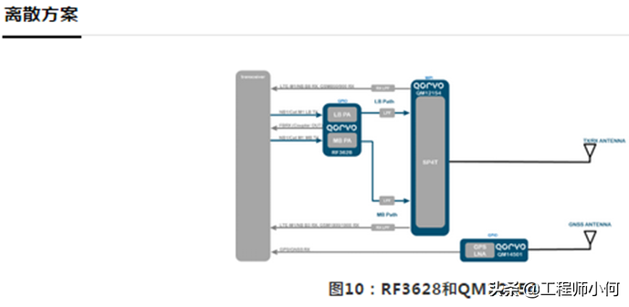 RF3628搭配QM12154/RF1648B是市场上很常见的组合,主要用于单模的Cat-M/NB模块。如果要考虑到增加对GSM的支持,可以另外选配QM52015或者RF5212A芯片。