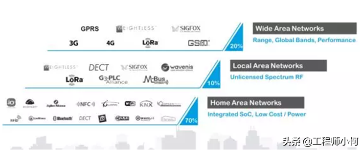多样的最终市场、应用还有使用环境,需要优化组合的射频技术来支持。预测在2021年,在“百亿”IoT连接设备中,70%的主体是低功耗的家庭/办公应用。