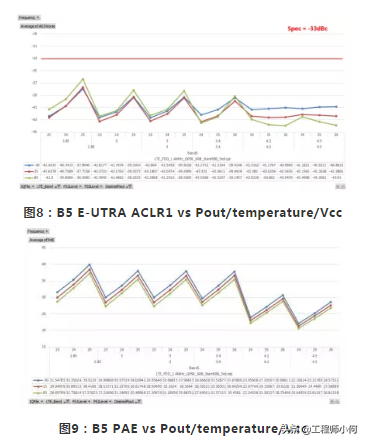 Vcc=2.85V,低电压操作。PA输出功率25dBm,天线端口功率23dBm。ACPR在-37dBm,具有4dB的余量,同时PA效率接近40%。Qorvo的解决方案