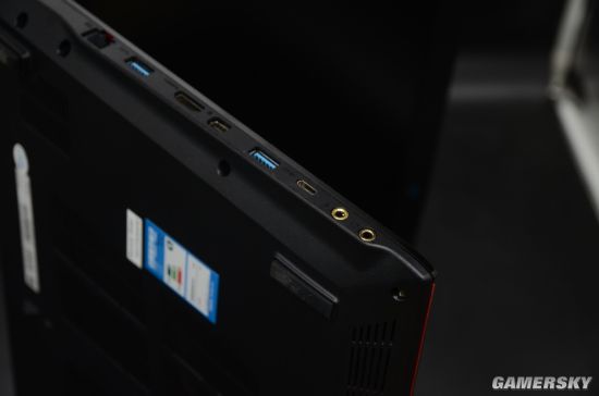 而微星GP62MVR 6RF(Leopard Pro)-215CN游戏本的开关与各种各样的接口,则位于机身的两侧,其中机身左侧安置着电脑锁口×1、网线接口×1、USB 3.0接口×2、USB 3.1 Type-C接口×1、HDMI + Mini DP的视频接口组合以及一组音频接口(包含耳机插孔和麦克风插孔各一)。