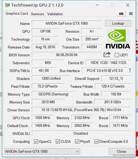 看到微星GP62MVR 6RF(Leopard Pro)-215CN游戏本配备的GTX 1060桌面级独显的显存只有3GB,一部分网友可能会认为这款游戏本内置独显和桌面级的GTX 1060 3GB一样,不仅显存少了3GB,GPU核心内的流处理器也同样被精简掉了一部分。但通过下面这张微星GP62MVR 6RF(Leopard Pro)-215CN游戏本内置独显的GPU-Z截图,我们可以看到它的GP106核心拥有完整的1280个流处理器。