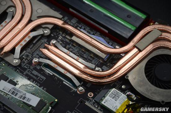 而为微星GP62MVR 6RF(Leopard Pro)-215CN游戏本内置i7-6700HQ处理器服务的热管数量则有两根,另有一根为GPU服务的热管,来照顾到CPU的供电模块。