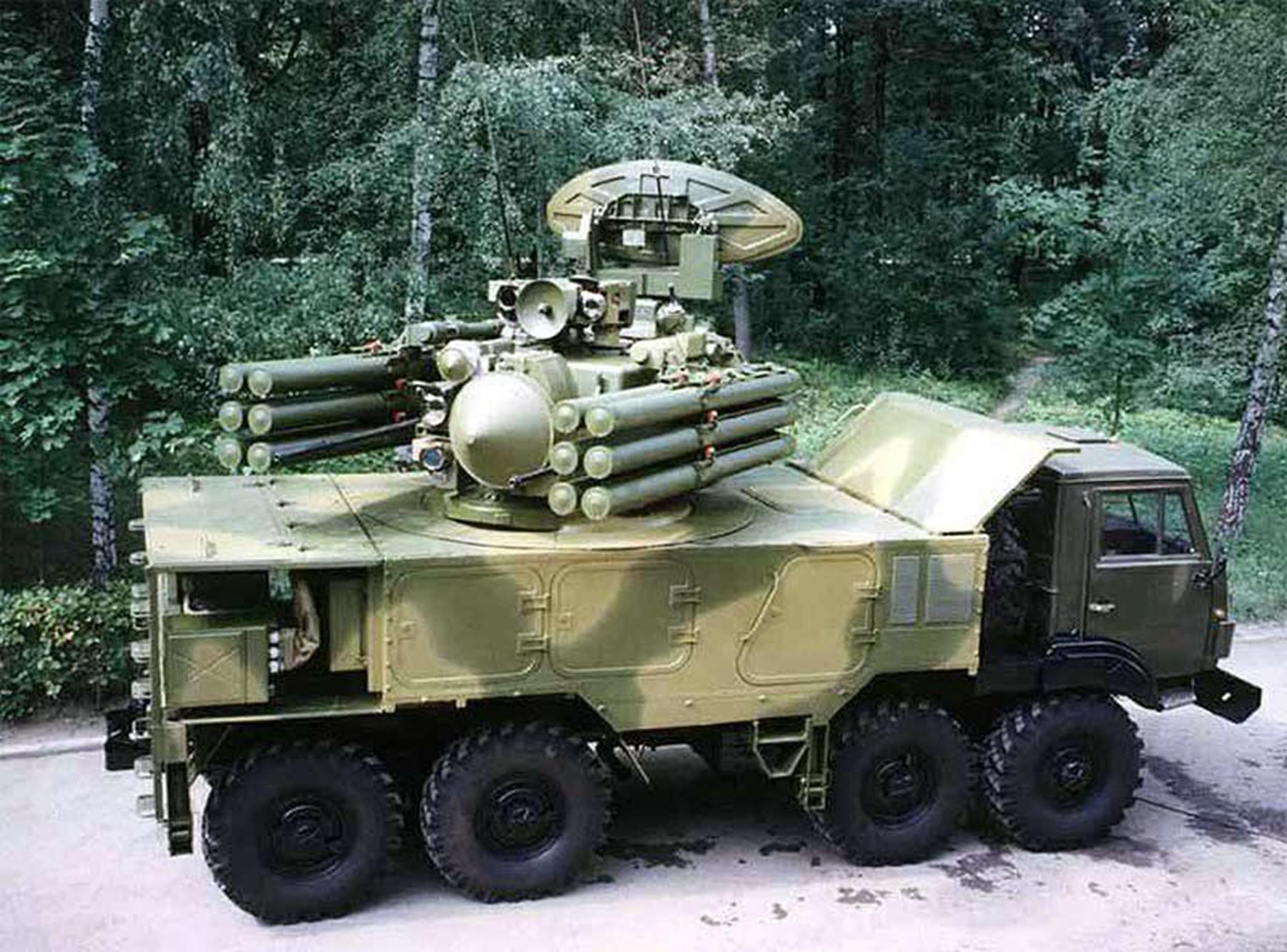 防空军看中了苏联陆军1988年刚服役的新型2S6“通古斯卡”弹炮合一自行防空系统。该系统是图拉仪器制造设计局(KBP)历经20余年研制成功的心血之作,由2组30毫米2A38双联装机关炮、8枚9M311防空导弹(北约称“SA-19”)以及相关搜索雷达、目标跟踪指示雷达、光学瞄准系统和履带底盘组成,主要打击武装直升机、对地攻击机等低空目标,为陆军装甲集群提供可靠有效的伴随野战防空。
