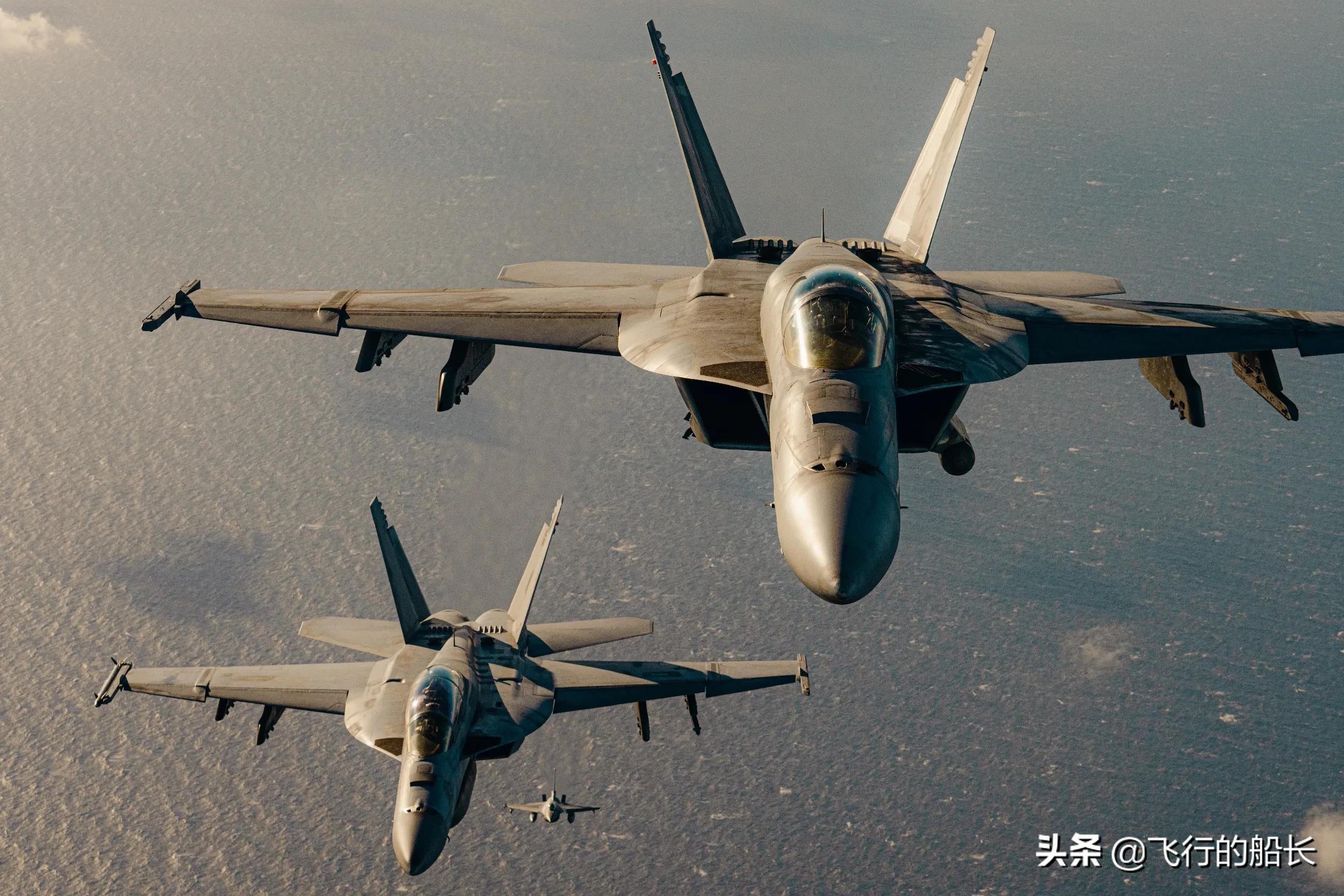 超级大黄蜂与经典大黄蜂编队飞行,体格大小可见一斑