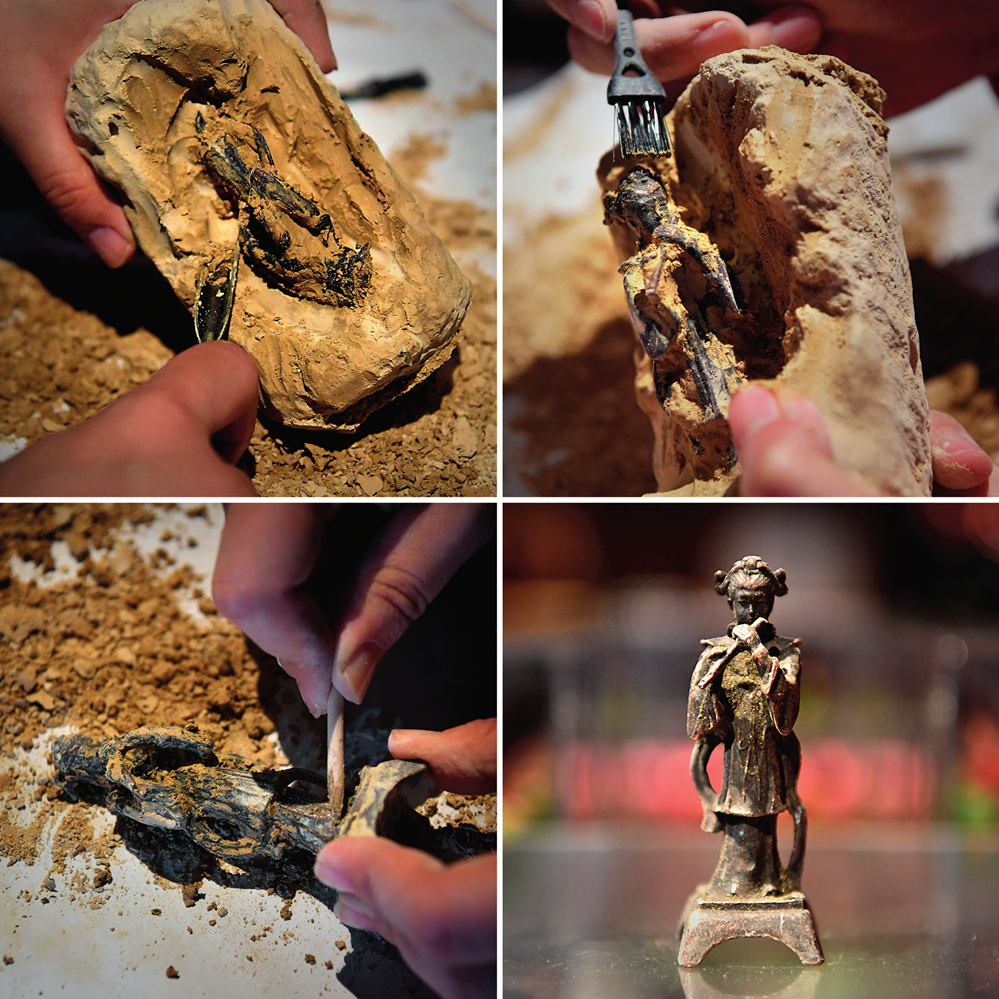 河南博物院推出的“考古盲盒”的“挖宝”过程(2022年5月17日摄) 李安摄/本刊