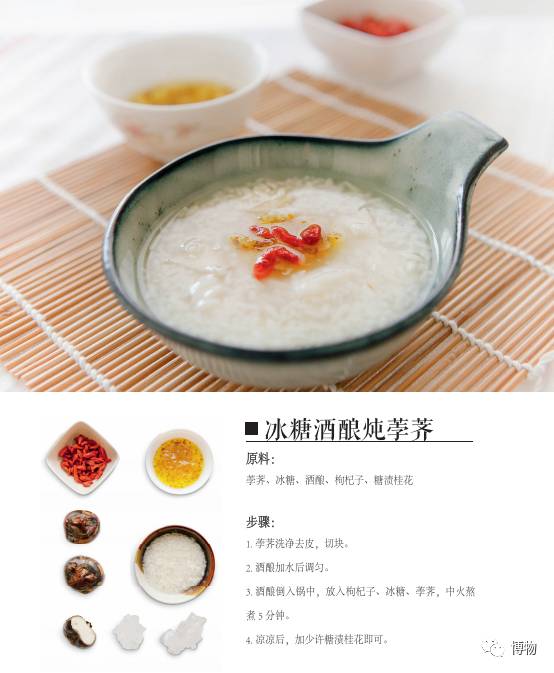 酒酿倒入锅中,放入枸杞子、冰糖、荸荠,中火熬煮5分钟