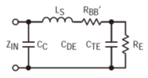 RBB′ = 基极扩散电阻 CC = 封装电容 LS = 基极管脚电感