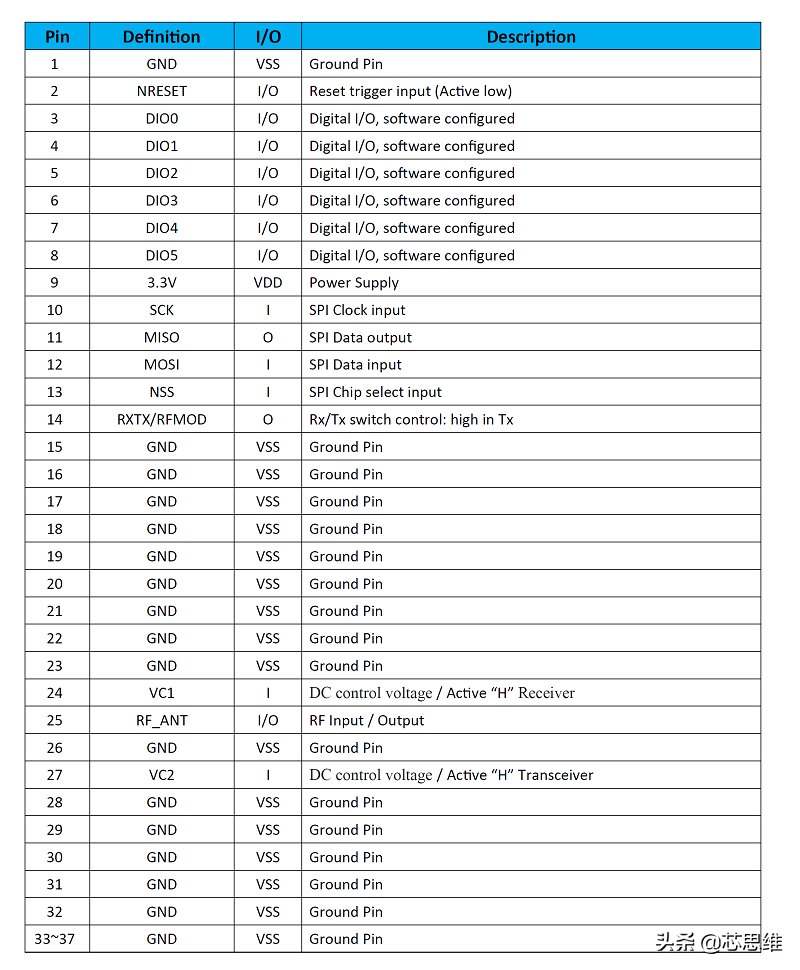 小封装:11 mm x 11 mm x 1.1 mmLoRa调制解调器Modem+18.5 dBm恒定RF输出 vs. 电源可编程比特率高达37500 bps高灵敏度: 低至-138 dBm优秀的阻断免疫力前导码检测自动RF感应和超快AFC的CAD有效载荷达128 bytes功能框图