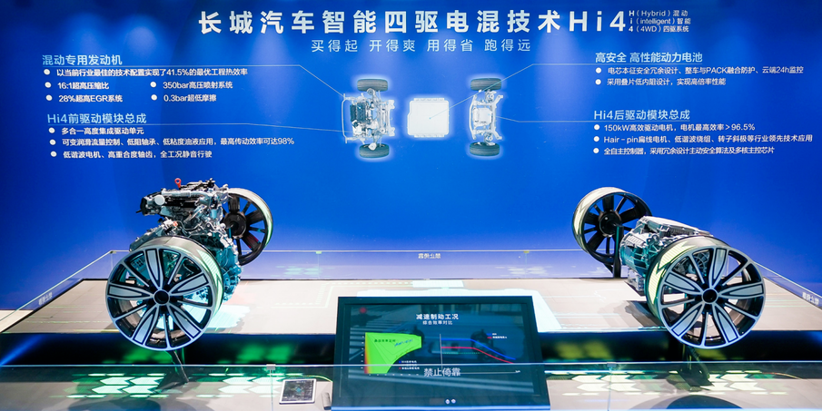 而Hi4系统通过两个电机的应用很好地解决了三个电机的痛点,在提供四驱性能基础上,两个电机的配备还进一步降低了车辆生产成本和车辆重量,这是它能够做到两驱车价格的重要原因。而Hi4的做法是将前轴的驱动电机移至后轴来驱动后轮,前轴的发电机则干两份工作,发电和驱动前轮,这背后就是哈弗造车技术先进的重要体现。