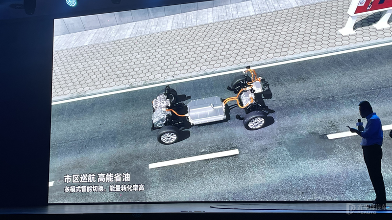 其中发动机在中速巡航时,系统处于动力直驱模式,发动机大速比齿轮组直接驱动,获得最大扭矩,提升整体动力加速性能,TM电机则随时准备介入,动态调节发动机最高效的工作区间;在更高的速度巡航时,发动机切换至更经济速比的齿轮组直驱,车速虽然升高,但发动机转速仍然处在高效区,提升燃油经济性。