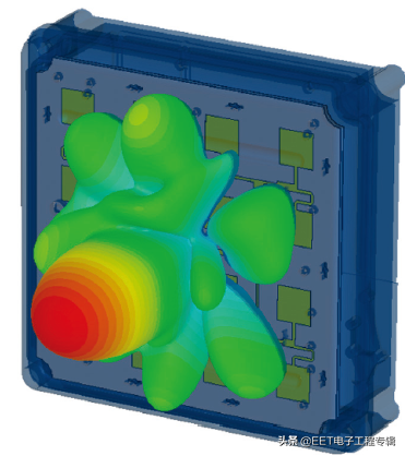 图3.平板阵列,图中所示为PCB顶部的天线贴片,IC则位于天线PCB的背面。