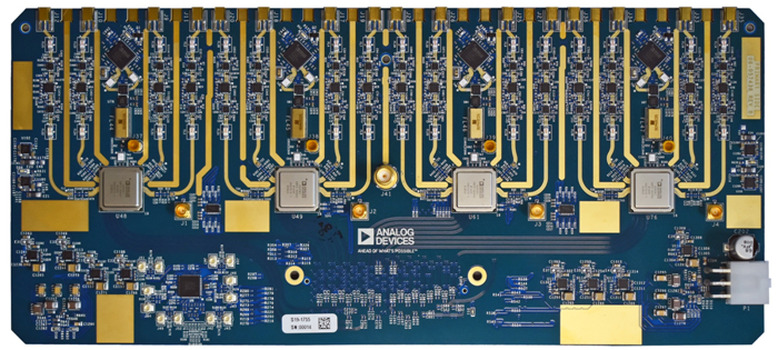 通道间隔为每个发射器/接收器对600mils,支持X频段、半波长、单极元素格点间距。采用这种尺寸时,设计显示每个单元数字波束形成系统可兼容高达X频段的频率。在四MxFE直接生成S频段的情况下,可以额外添加单个RF混频器,以实现X频段频率操作。