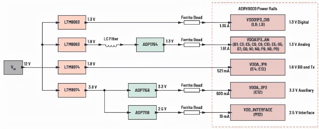 优化ADRV9009 6 GHz双通道RF收发器的电源系统