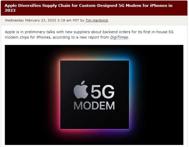 据MacRumors报道,根据DigiTimes的一份新报告,苹果正在与新供应商就其首款iPhone内部5G调制解调器芯片的后端订单进行初步谈判。