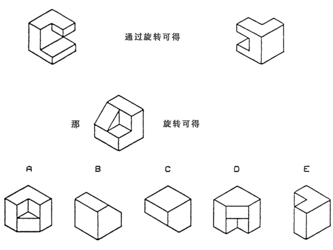其实早在1978年,就有研究人员通过实验发现了其中的性别差异。当时的研究人员会给参试者提供好几张二维图像,并让参试者在其中挑选基于同一个三维模型投影的匹配图像,这种实验方法被称为心理旋转测试,是个经典的空间思维测试工具。结果表明,男性的心理旋转得分明显会高于女性,这也就意味着男性有着更强的空间思维能力。