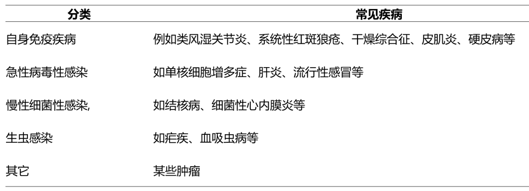 除了风湿病以外,非风湿类疾病,如慢性感染、肿瘤性疾病也会引起RF的升高: