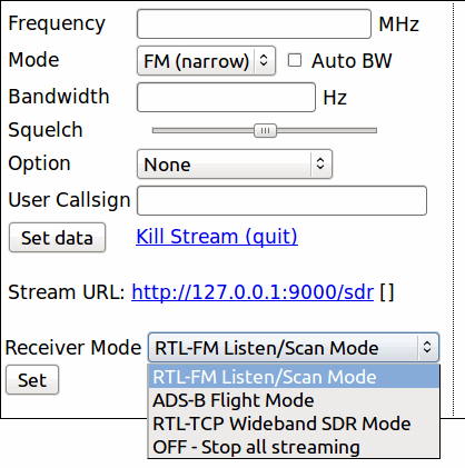 运行广播RTL-SDR音频的服务器。有一个web界面,允许远程控制服务器。