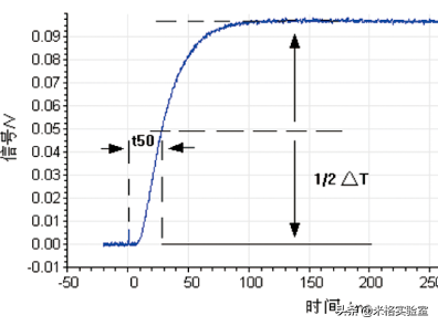 在一定的设定温度T(由炉体控制的恒温条件)下,由激光源或闪光氙灯在瞬间发射一束光脉冲,均匀照射在样品下表面,使其表层吸收光能后温度瞬时升高,并作为热端将能量以一维热传导方式向冷端(上表面)传播。使用红外检测器连续测量样品上表面中心部位的相应温升过程,得到温度(检测器信号)升高对时间的关系曲线。
