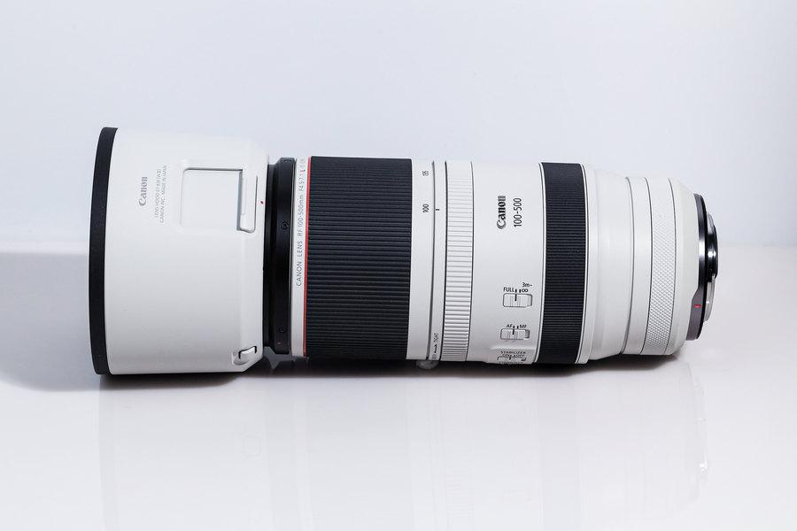 佳能RF100-500mm F4.5-7.1 L IS USM搭配遮光罩整体长度