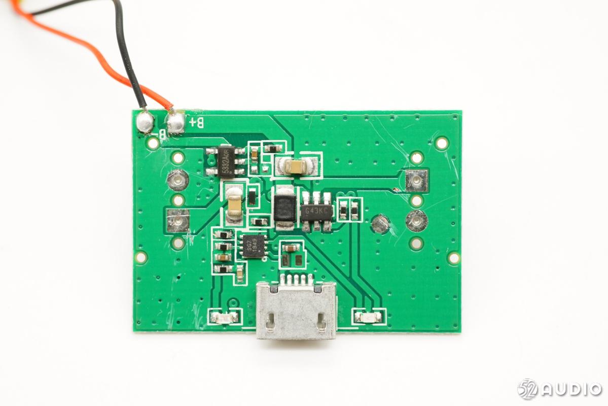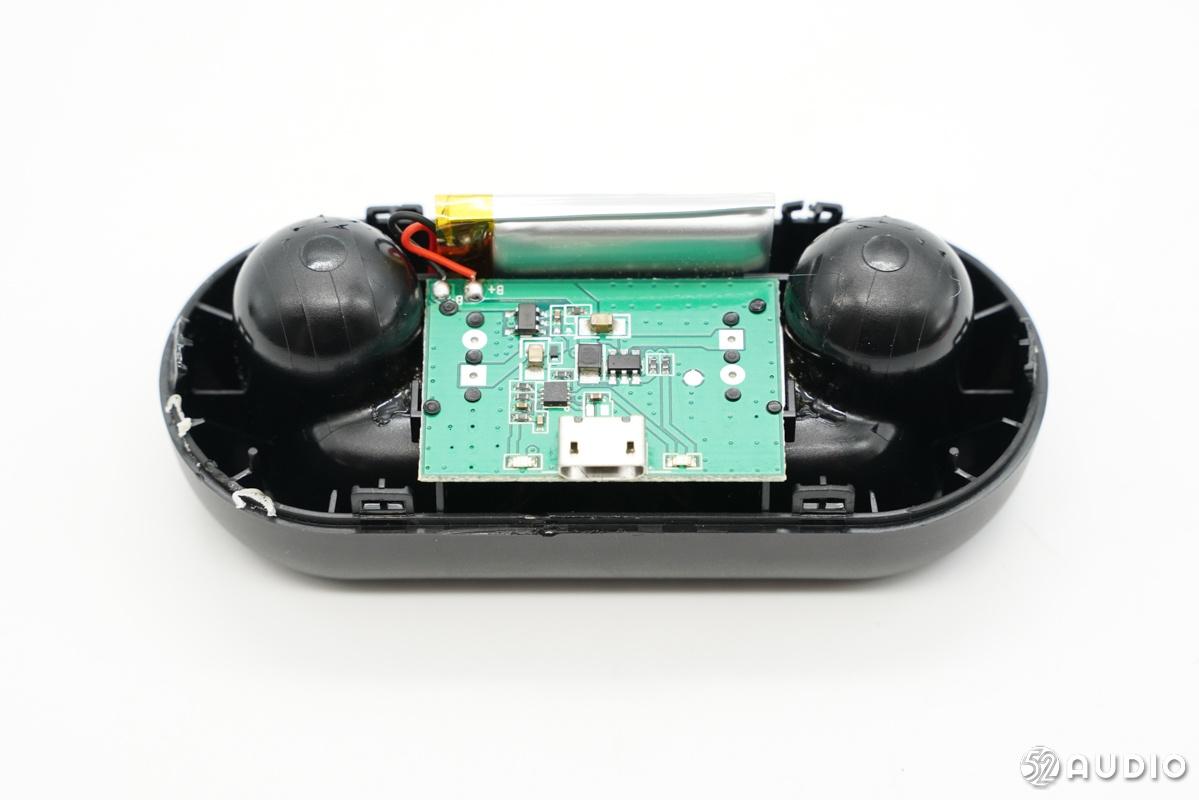 充电仓主电路展示,Micro-USB接口两侧各一个指示灯,用于指示充电盒充电状态。