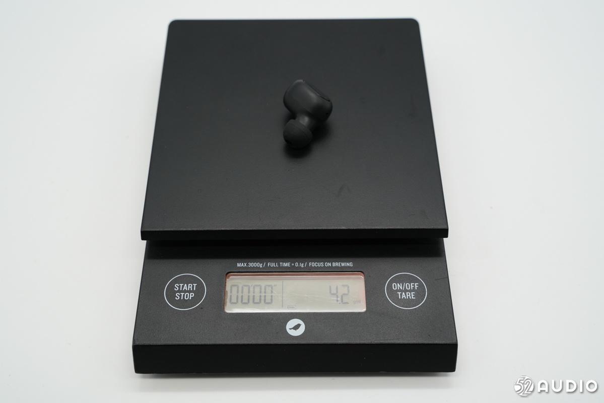 单个耳机重4.2克。重量较轻,佩戴轻松。