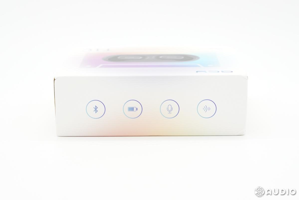 包装盒顶部有四个彩色的图例,分别代表蓝牙连接、续航、通话和立体声。