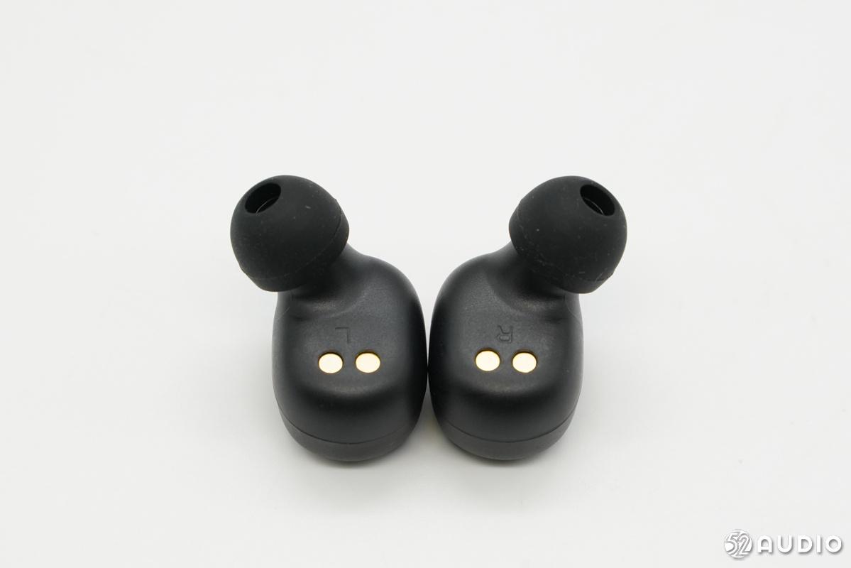 耳机内侧展示,充电触点处有L/R左右标识。