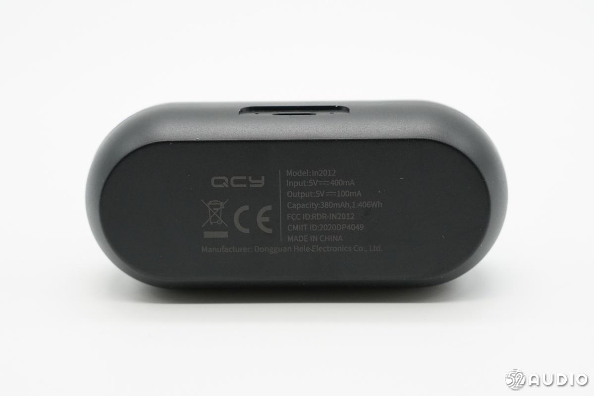 充电盒底部信息,型号:In2012,输入:5V⎓400mA,充电盒电池容量380mAh/1.406Wh。