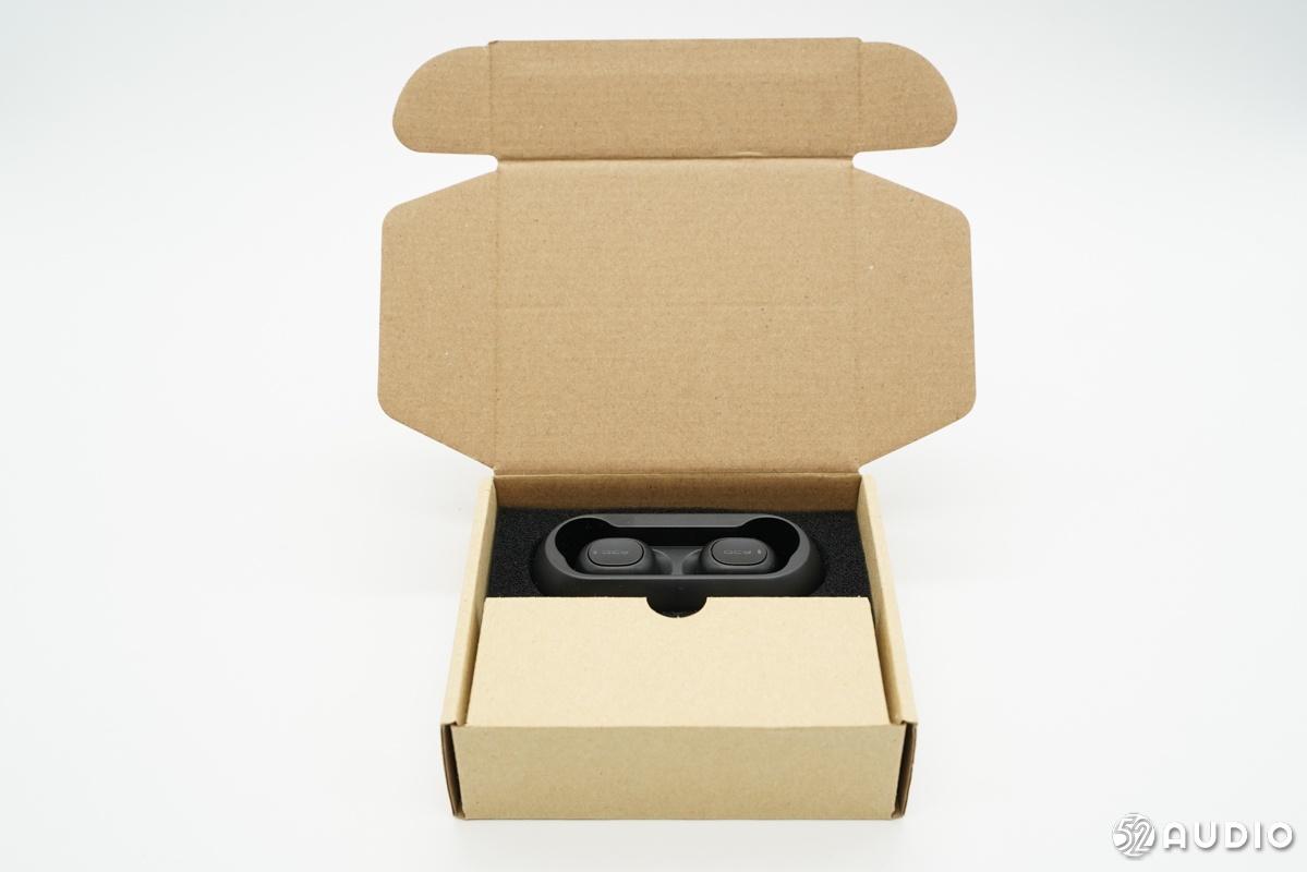 耳机和配件放在一个牛皮纸盒内。