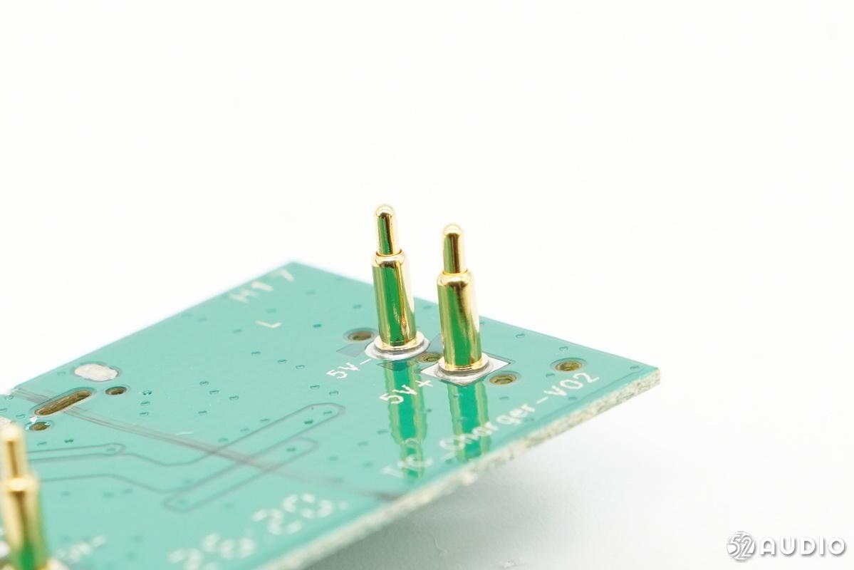 给耳机充电/传输数据的Pogo Pin特写。