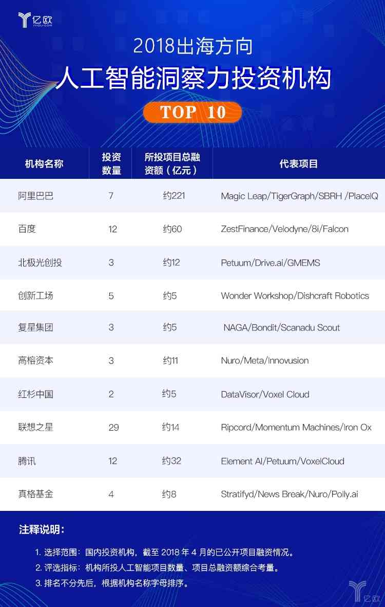 对此,亿欧盘点了2018出海方向人工智能洞察力投资机构top10。