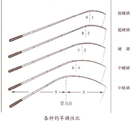 这张图上明确的标注了不同调性对路亚竿的敏感度(鱼饵在水中状态传递,比如路过障碍,撞到鱼,有鱼咬饵等情况的反馈,让你多手能感觉到震动的敏感度。)