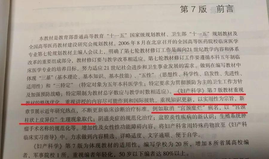 人卫出版社《妇产科学》第 7 版教材,在前言里就说了: