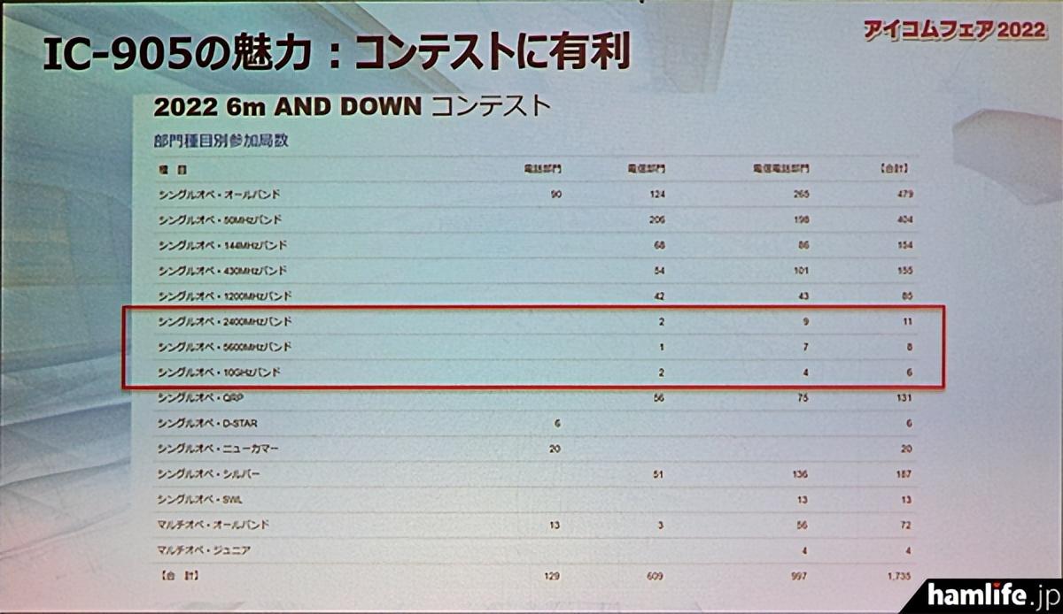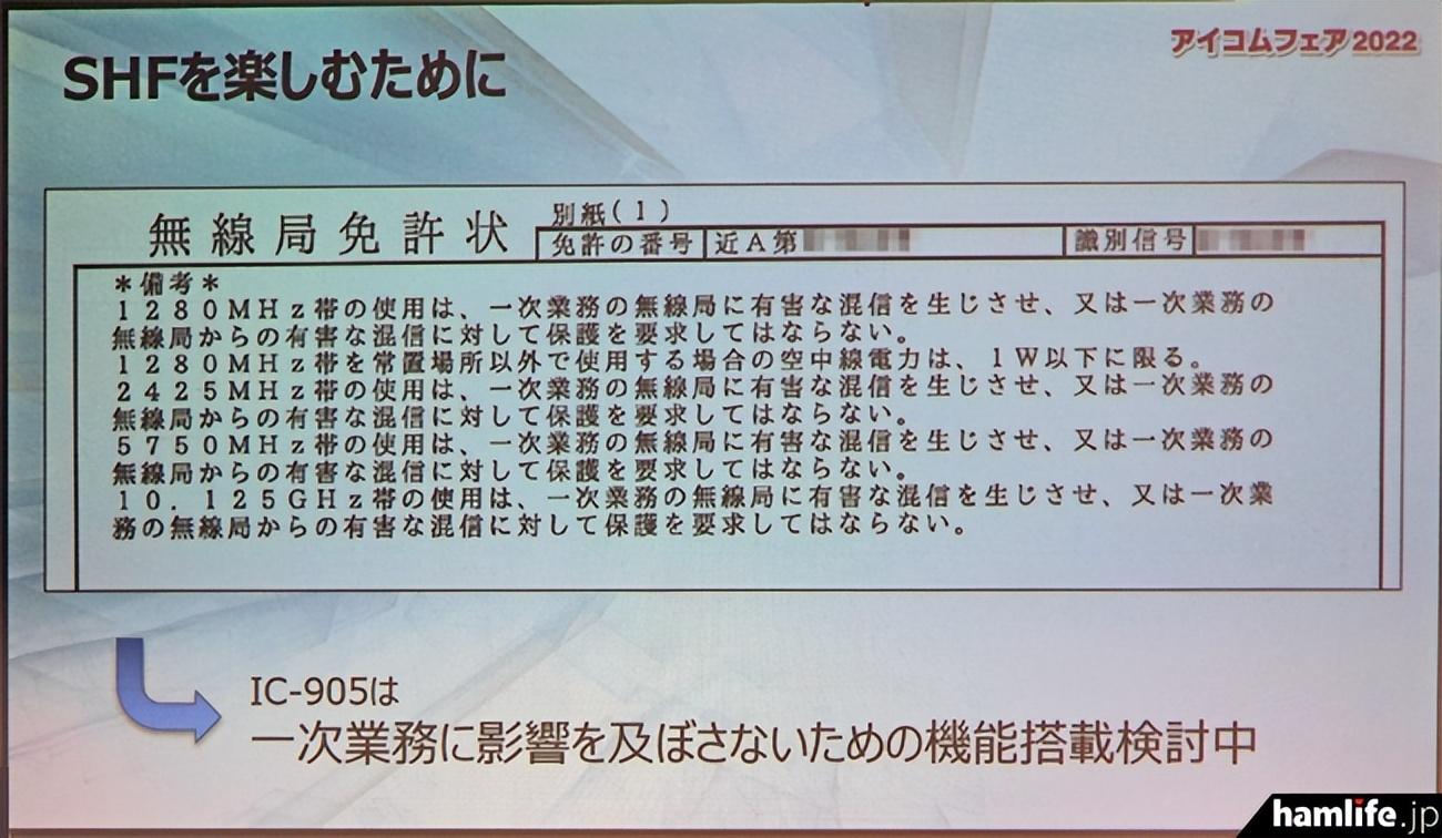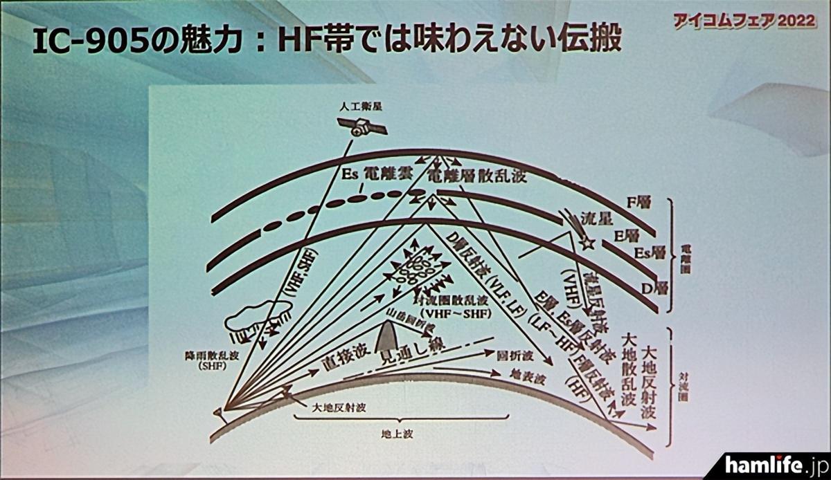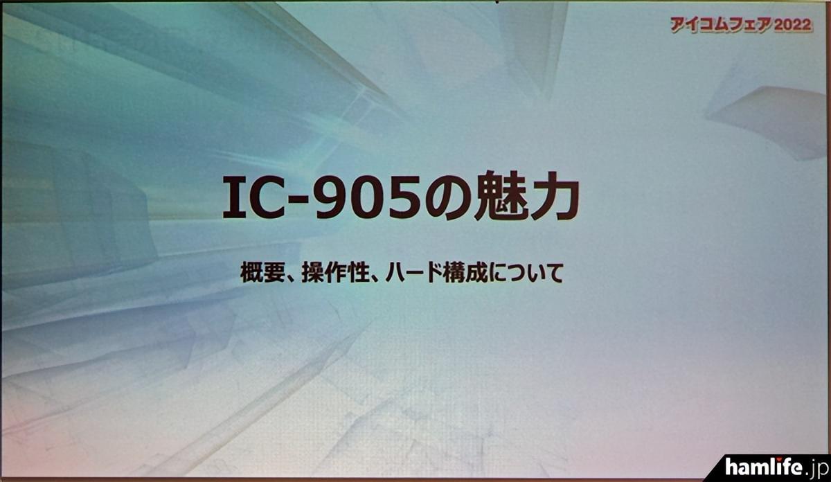 最后,在此介绍在 "成山2号馆的Icom展览会 "讲座上展示的IC-905幻灯片的摘录。此外,hamlife.jp正准备在不久的将来发布IC-905讲座的视频记录。