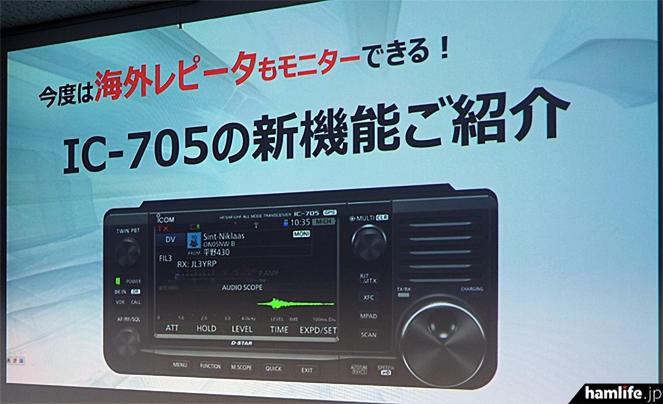 在下午会议结束时的 "IC-705新功能介绍 "中,惊喜地宣布 "IC-705的DV中继器监测功能将随着新固件的推出而进一步改进,使海外D-STAR中继器也能被监测到"。(新固件于12月22日晚发布)。