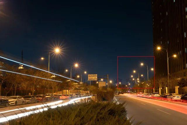 尼康称Z 50mm f/1.2 S采用3枚非球面镜片,有效地控制了矢状面彗差,使点状光源的图像失真最小化,同时也抑制了色差引起的色散和不自然的虚化效果。下面我们用Z 50mm f/1.2 S全开光圈(F1.2)、ISO64、AWB拍摄远处的路灯。