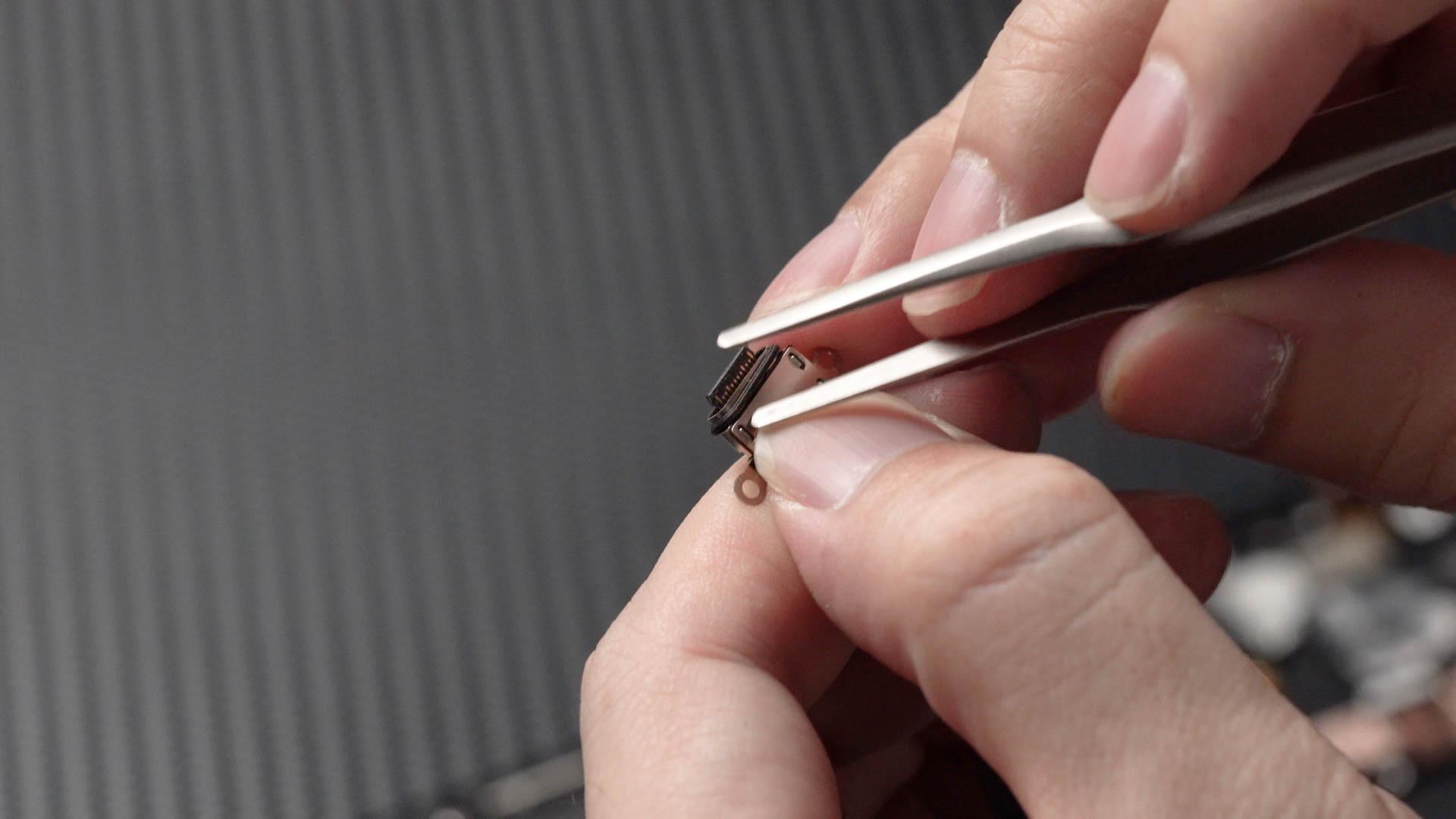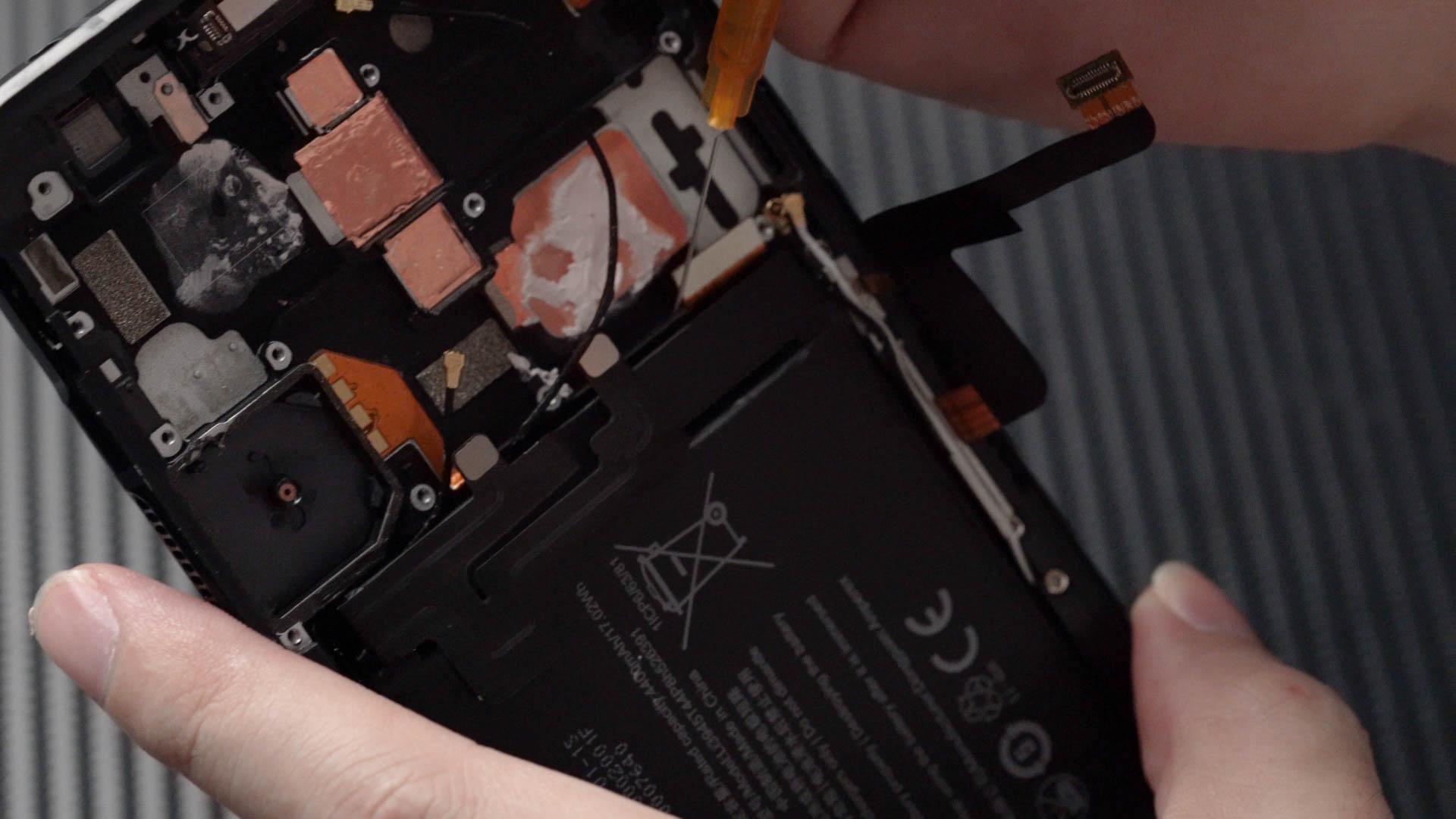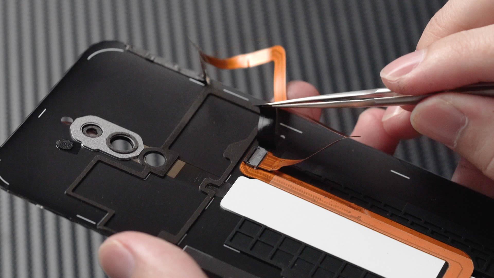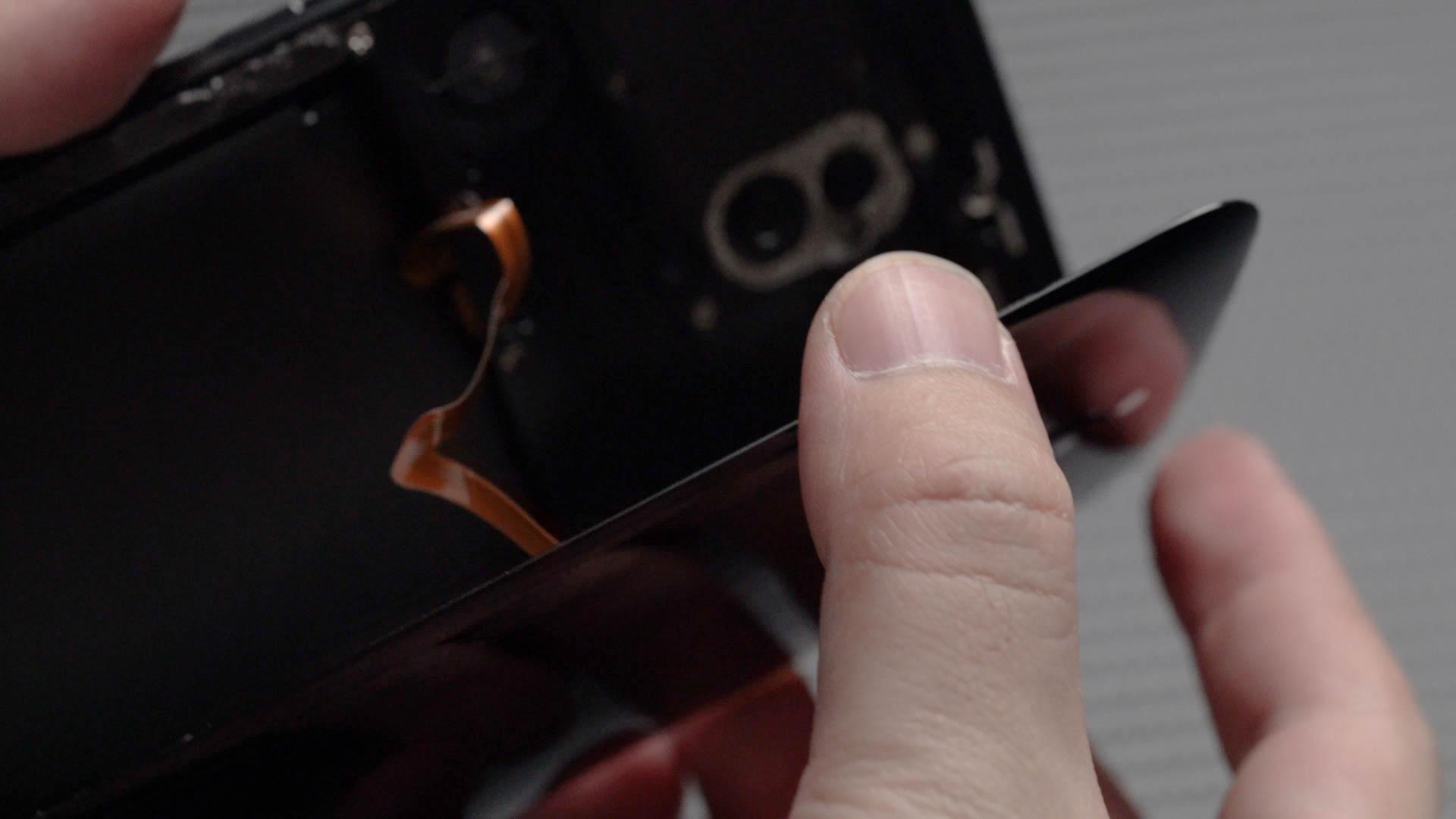依次挑开主FPC、指纹BTB和RF接口,卸下一颗固定副板的螺丝