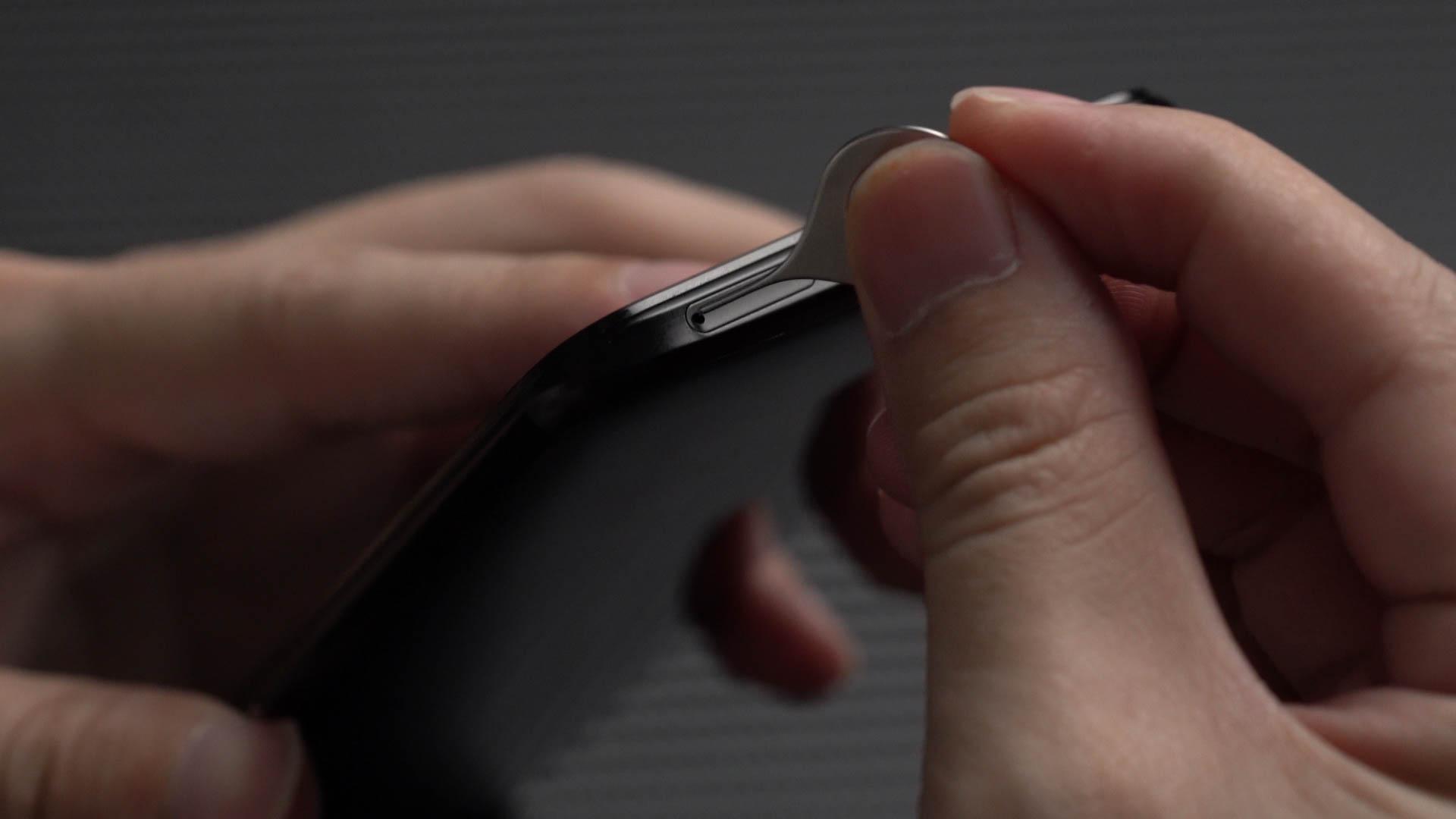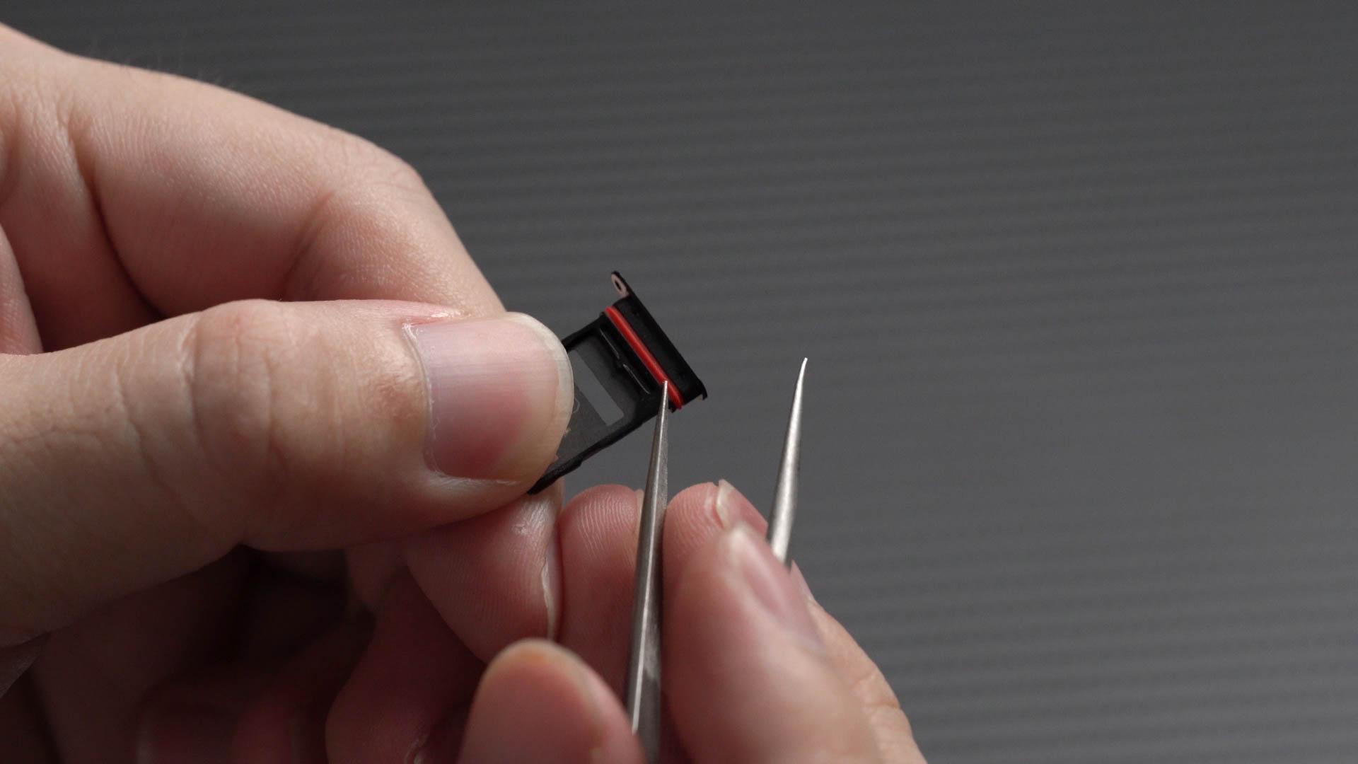 第一步 关机后取出卡托,卡托在机身底部,双卡位上下放置,内侧设有防尘防水的胶圈