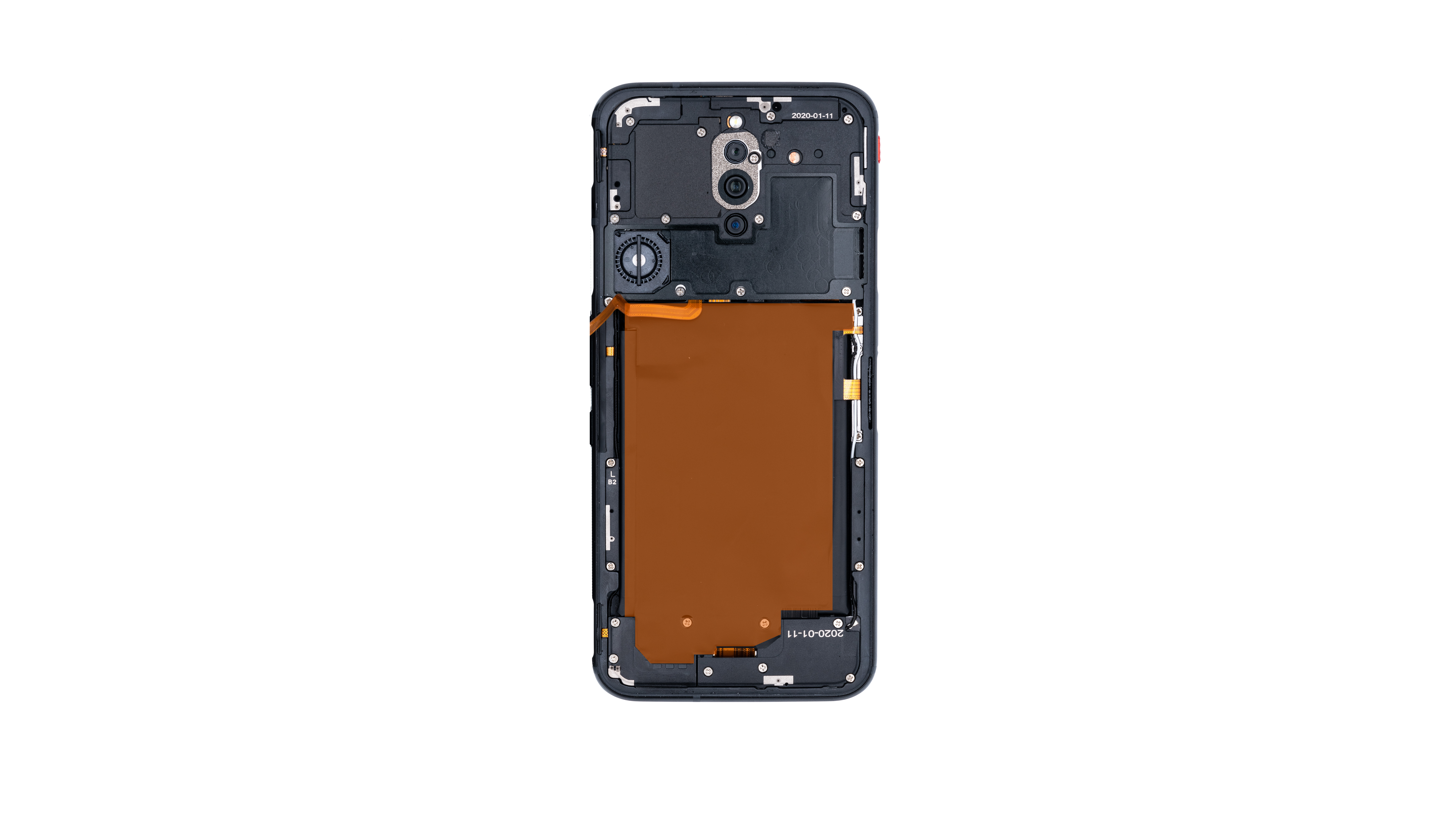 盖板背面直接粘有散热硅脂,上方有前摄和听筒的缓冲泡棉,但BTB并没有防护措施。闪光灯通过触点的方式和主板相连。上方几处塑料材质做了LDS天线处理。