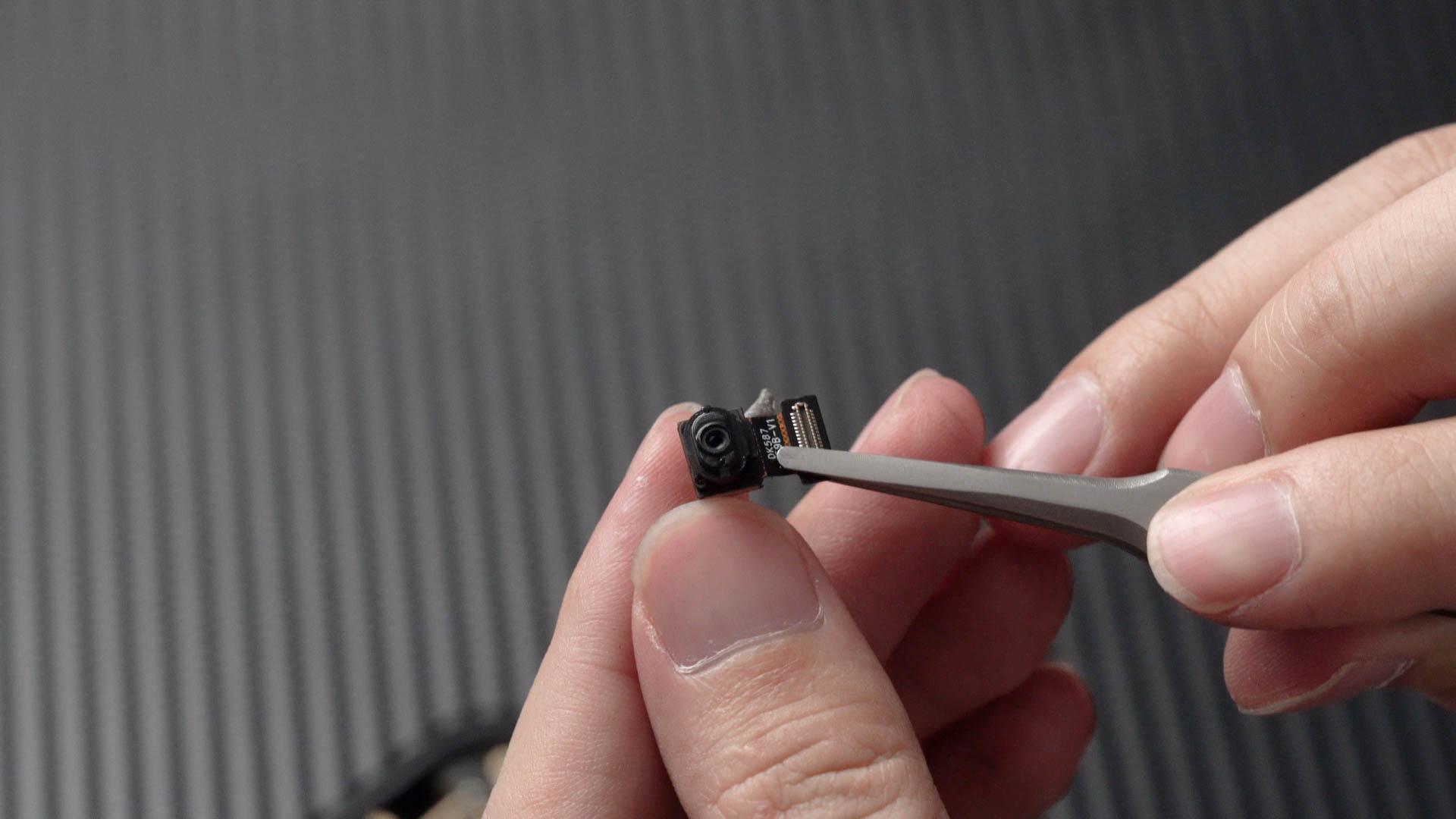 再挑开耳机孔、环境光组件和前摄的BTB,取出前摄,前摄为800万像素的Hi846