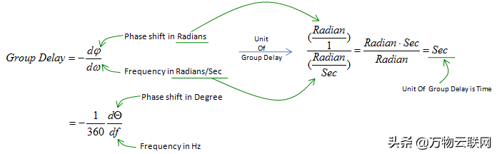 可能数学形式的定义看起来更清晰,因为数学表达式非常简单,如下面的方程所示。请注意,“延迟”和“群延迟”是不同的。