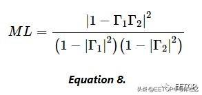 在这种情况下,失配损耗(以线性项而不是分贝表示)由等式 8 给出。。
