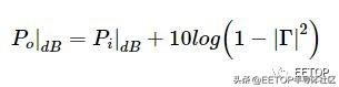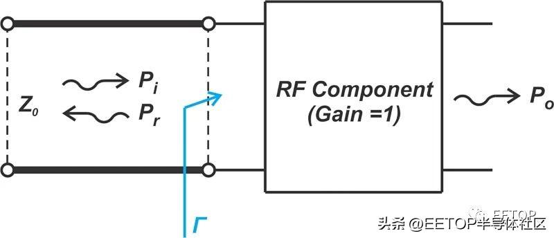 考虑图 6,其中传输线连接到 RF 组件的输入。入射功率为 Pi, 并且“观察”RF组件输入的反射系数Γ。例如,如果|Γ|2=0.1,我们得到: