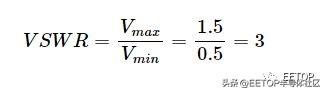 上面的讨论表明,当发生全反射时,包络的最小值为零伏Vmin = 0(图 3)。然而,对于部分反射,Vmin更接近峰值Vmax。在没有反射的理想情况下,Vmax 实际上等于 Vmax。因此,Vmax与 Vmin之比(称为VSWR)与阻抗不连续处发生的反射量有关。在数学语言中,VSWR 定义为:射频回波损耗
