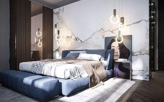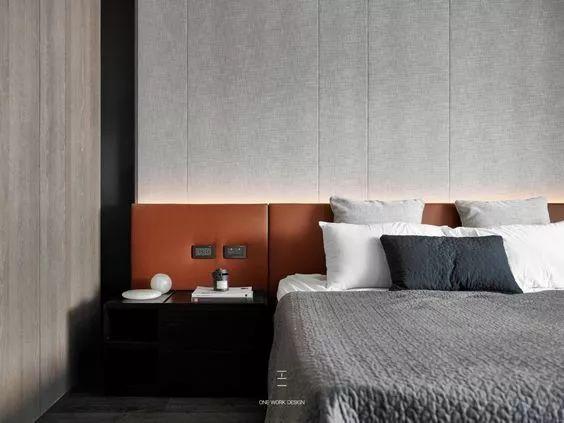 对于不带背板的床,一般在设计时会考虑在床背位置墙面增加软硬包造型,从舒适角度采用软包要更人性化。固定床背通常设计高度在1000mm~1200mm。