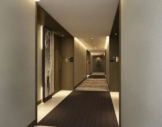 ③ 过道灯光要柔和并且没有眩光,亮度适中要保证监控画面清晰。在门的上方最好设计一个开门灯,方便客人